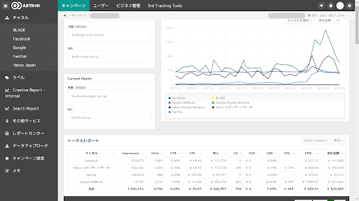 全体の予算や効果対する進捗確認や、各媒体の効果状況などを見える化し、運用ディレクションの際に、有効な情報を提供します。
